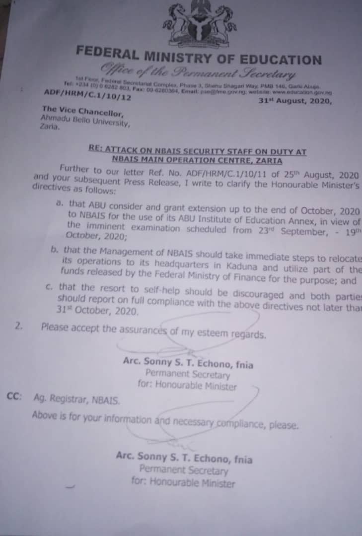 ABU yet to comply with ministerial directives on Zaria NBAIS office Closure.