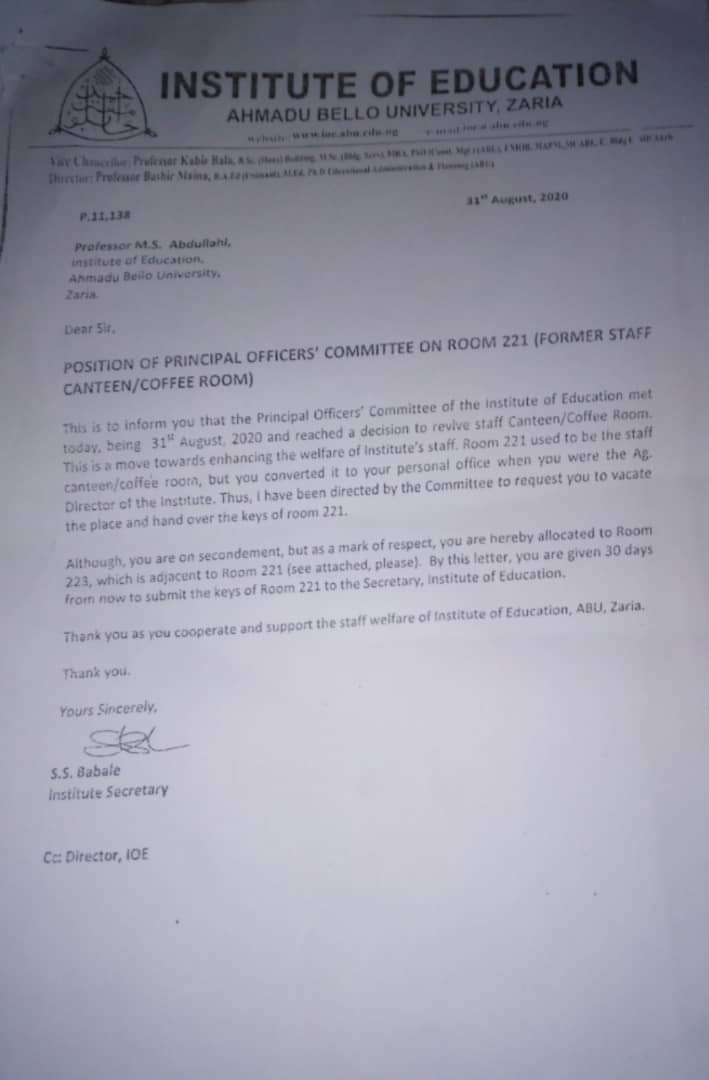 “I was later informed that at about 2:15 a.m. our security men were alledgedly over powered, pushed out of the premises and keys of the offices were collected from them by ABU security personnel.