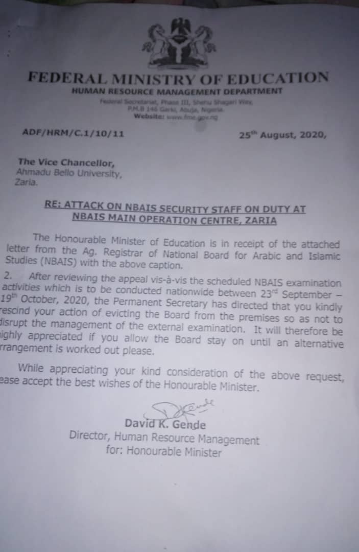 Ahmadu Bello University (ABU) Zaria was yet to comply with the directives of the Minister of Education on the closure of National Board for Arabic and Islamic Studies (NBAIS) six days after minister’s directives