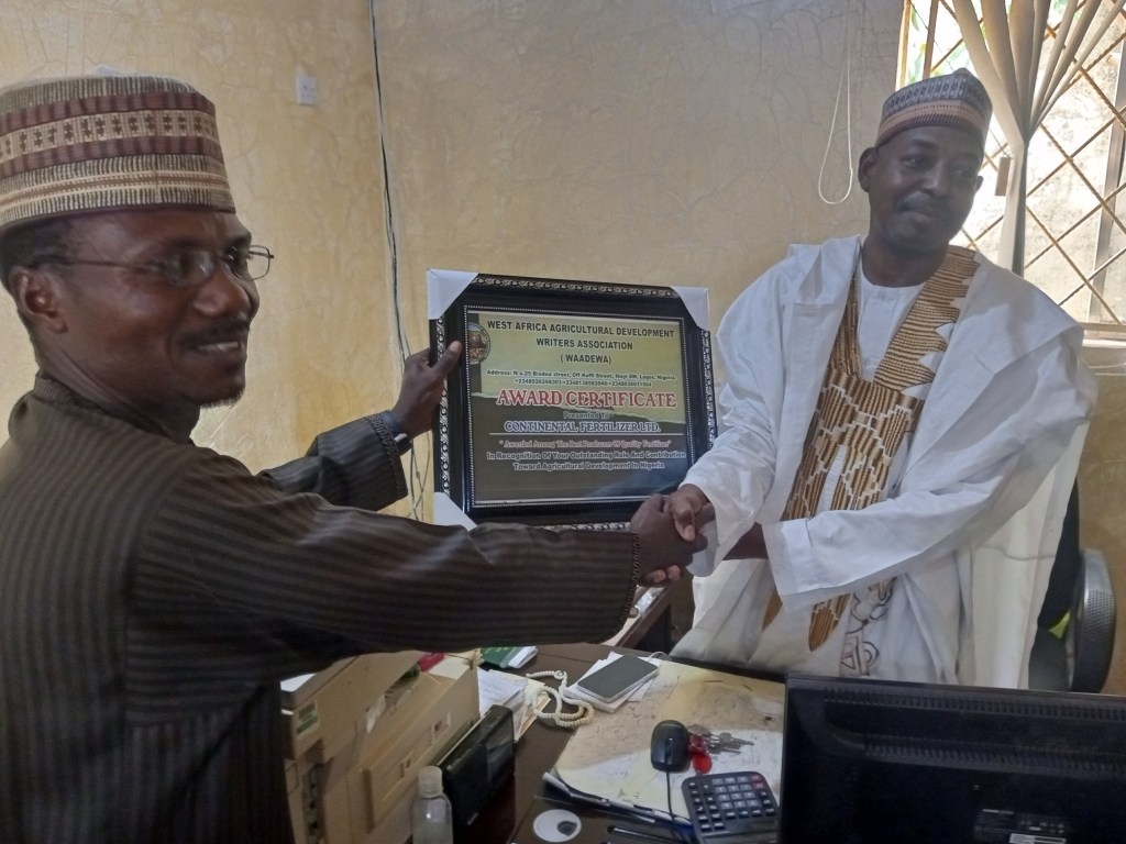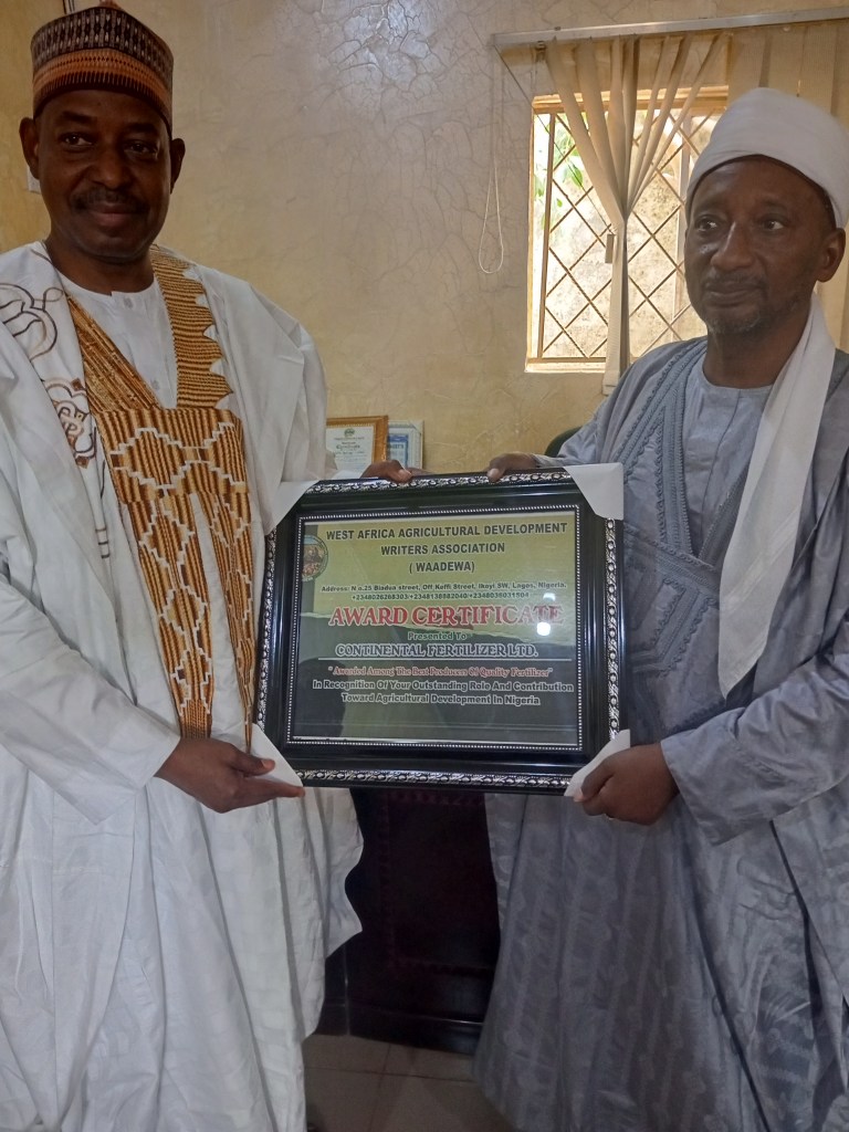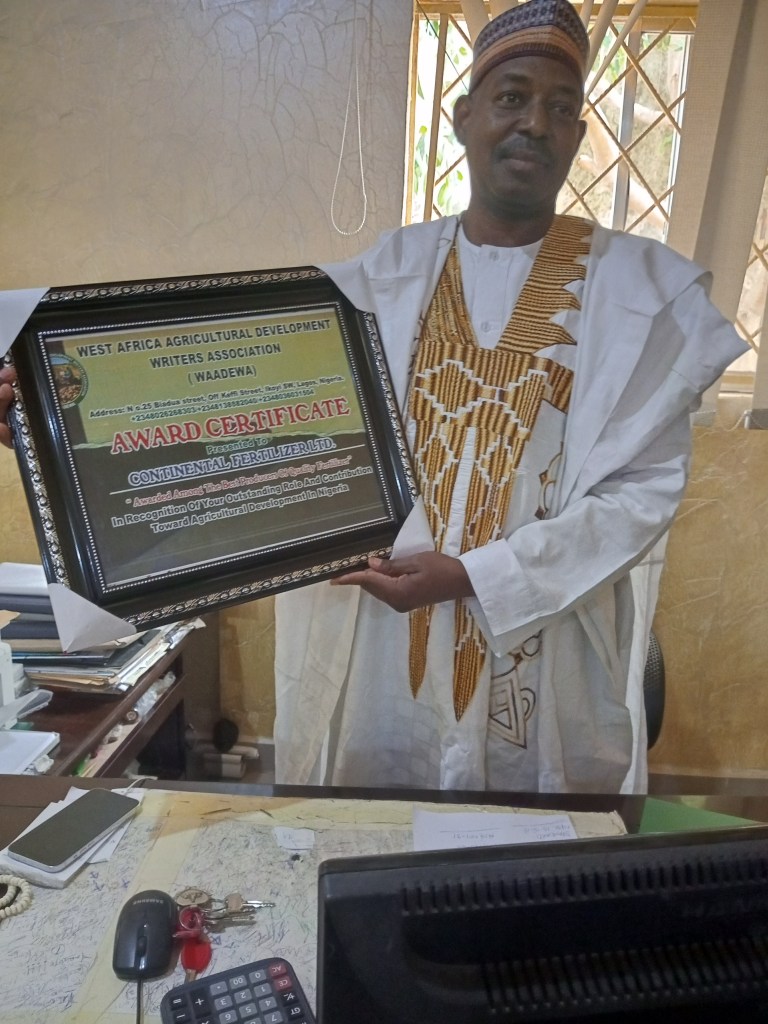 The award was presented to the CEO of Continental Fertilizer, Alhaji Ibrahim Saulawa in kano, on Tuesday in the presence of the company Director Alhaji Ibrahim Usman (Chiroman Zazzau) and the staff.